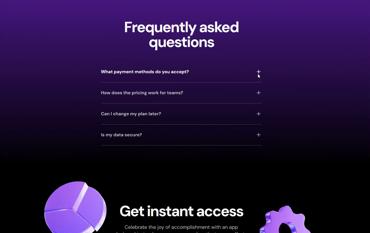 onetask/ βββ src/ β βββ app/ # Next.js 14 app directory β βββ assets/ # Static images, icons, etc β βββ components/ # Reusable UI components (Button, AccordionItem, etc.) β βββ sections/ # Main sections of the page (Hero, Features, CTA, Footer) βββ .eslintrc.json βββ .prettierrc βββ next.config.js βββ package.json βββ postcss.config.mjs βββ tailwind.config.js βββ tsconfig.json